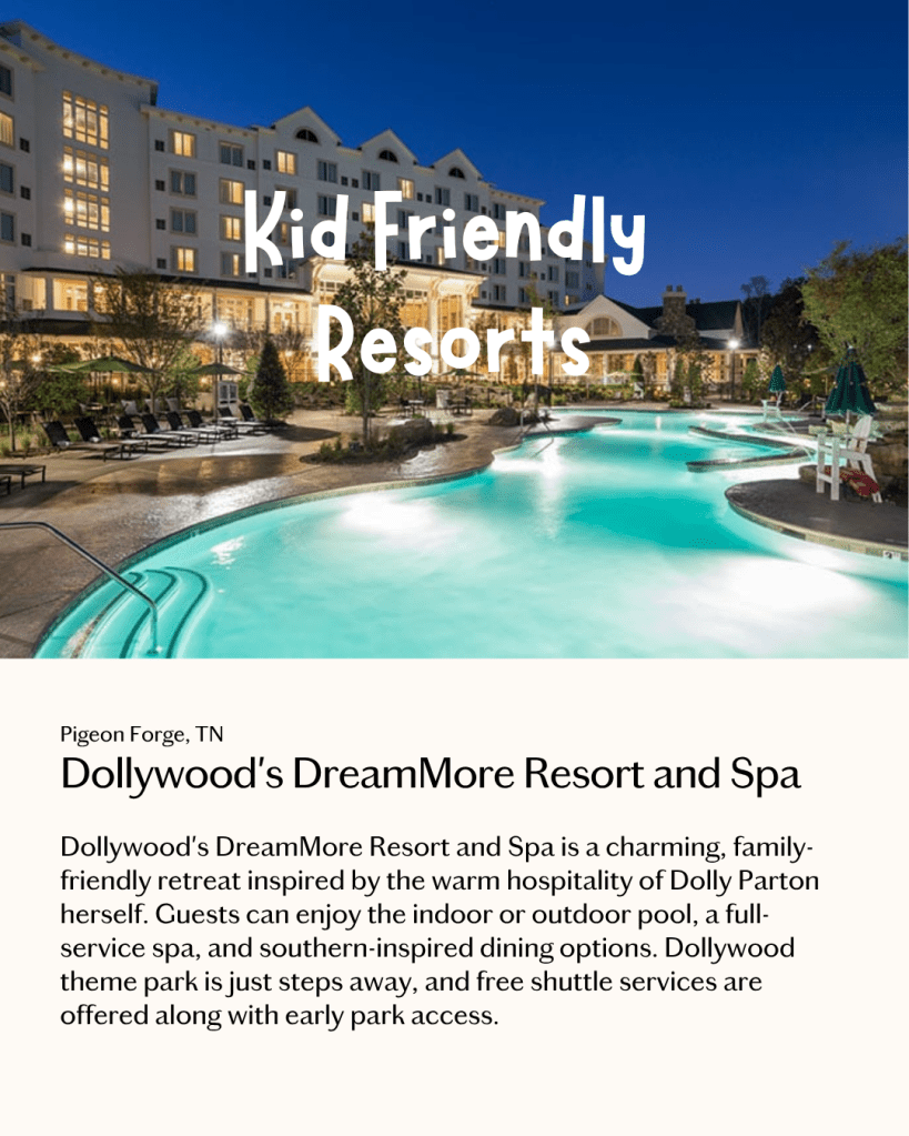 Amenities: Complimentary shuttle services to the park, indoor or outdoor pool, a full-service spa, and southern-inspired dining options.