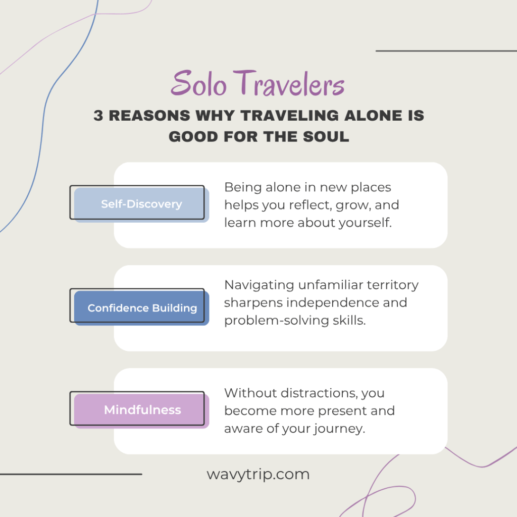 Solo adventures are a powerful way to connect with the world—and yourself. Without the influence of others, you can set your own pace, choose your own adventures, and fully immerse yourself in new places and cultures. It encourages independence, builds confidence, and often leads to meaningful connections with locals and fellow travelers. Traveling alone can be both empowering and deeply rewarding, opening the door to personal growth and unforgettable experiences.