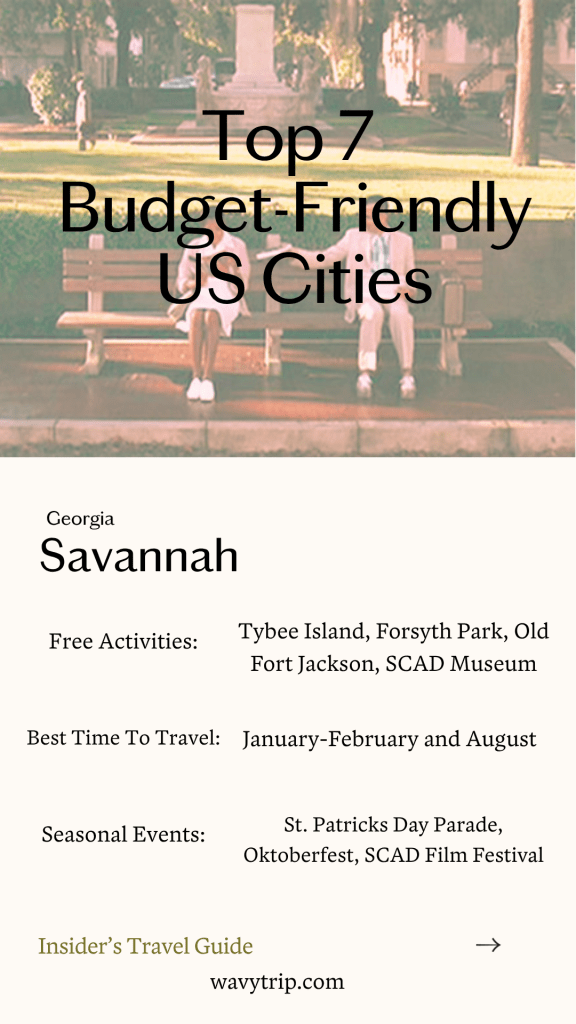 If you’re looking to visit the beach on a budget and you like history, Savannah is the place for you. With a reasonable drive to the beach and budget-friendly hotels, you can spend an entire weekend for less than $500 total!