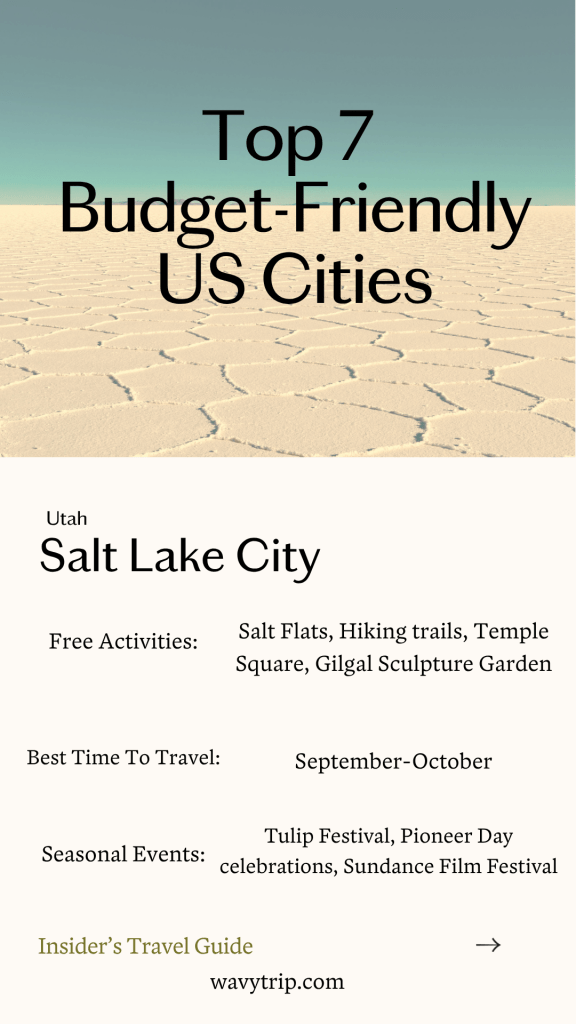 Salt Lake City offers a mix of outdoor adventure, history, and culture, all with plenty of budget-friendly options. Here are some tips and activities to help you enjoy the city without breaking the bank: