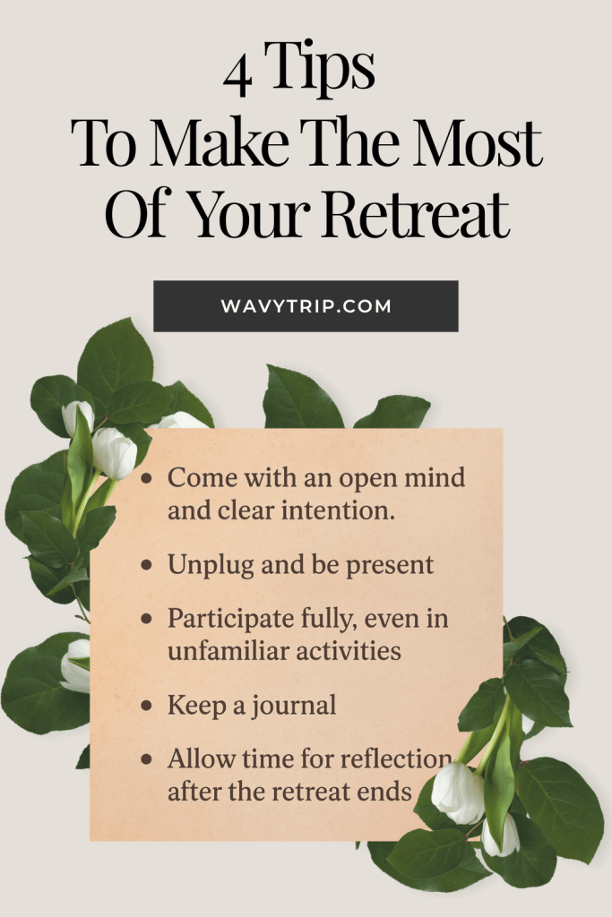 While every retreat is unique, most share a few common elements designed to help you reset, relax, and reconnect.
